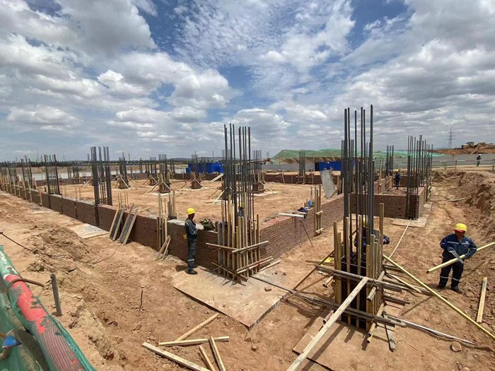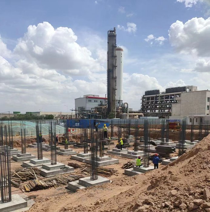 目前,開工的單體有氣化單元(氣化裝置框架,渣及灰水裝置框架,變電所及機(jī)柜間,翻車機(jī)室裝置,筒倉裝置……); 廠前區(qū)單元(生產(chǎn)性用房,食堂浴室,消防及氣防站);中控室單元等。